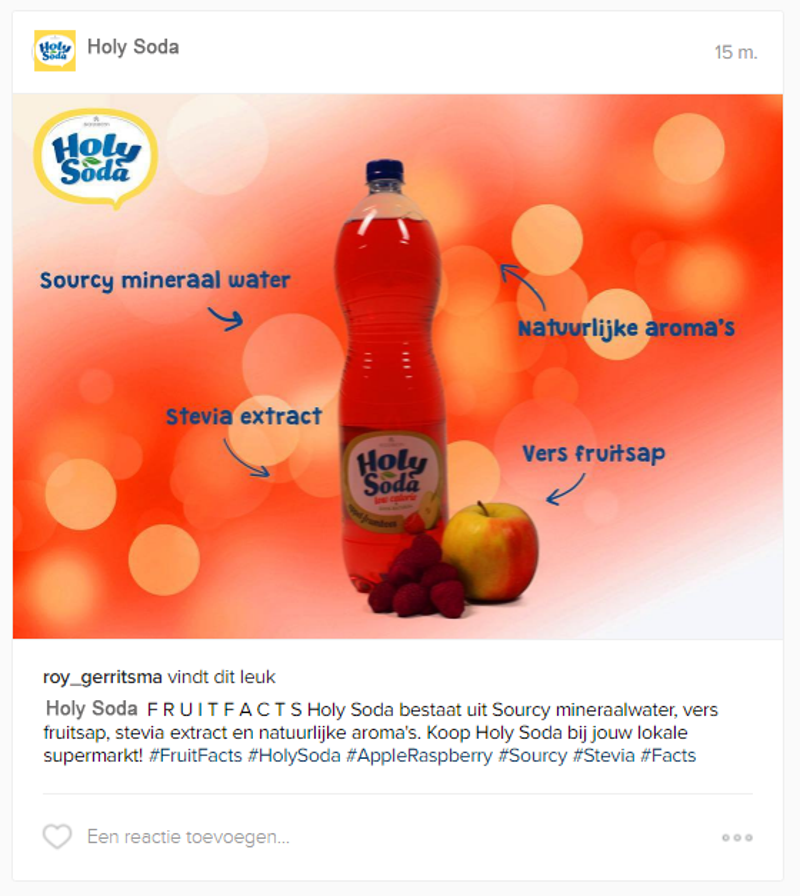 Onderstaand volgt een chronologische volgorde van alle content voor Holy Soda die op Instagram en Facebook geplaatst wordt.